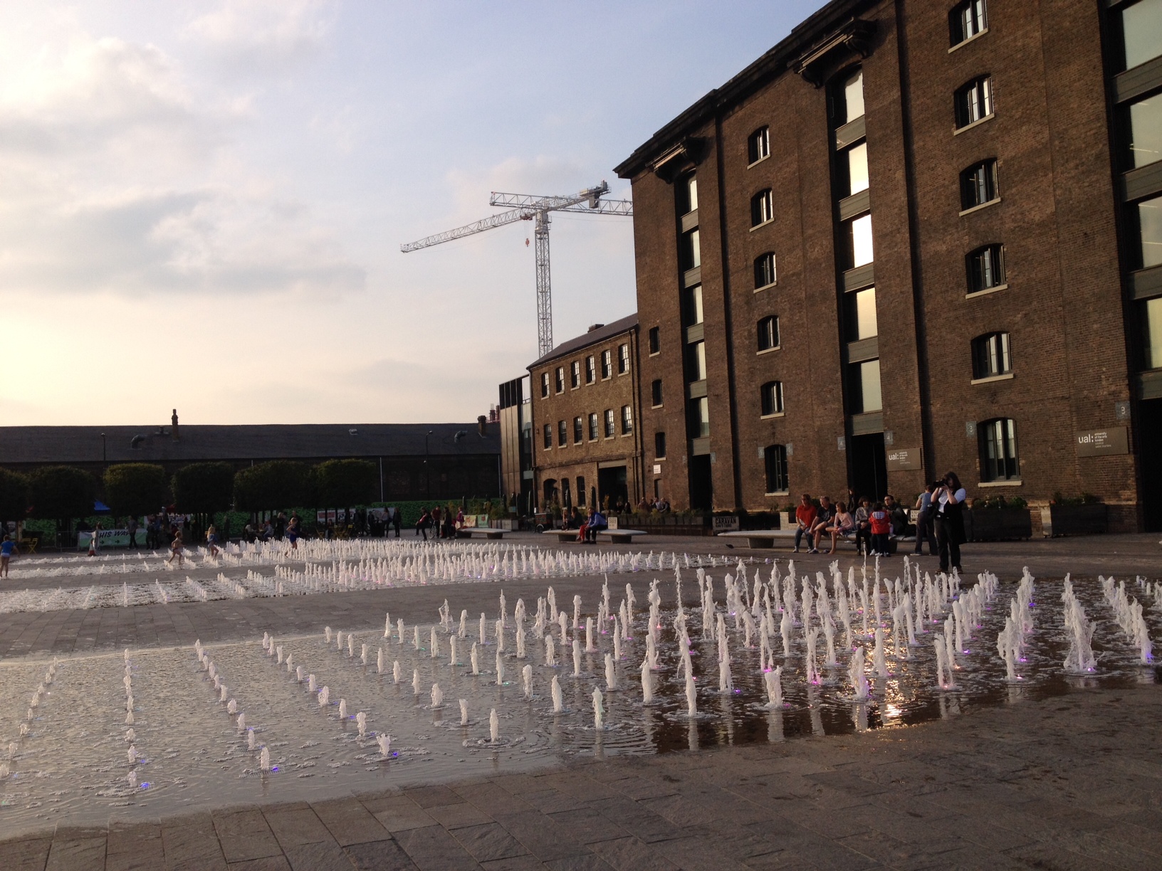 We pottered through Soho and Covent Garden, bought Anna a long-coveted policeman’s helmet at one of the tourist trap gift shops, and then ended the day in the newly refurbished Granary Square by Kings Cross station. Sophia ate her tea while we watched Anna caper through the amazing fountains there; me feeling like a very smug mummy that I’d thought to bring a change of clothes for her!