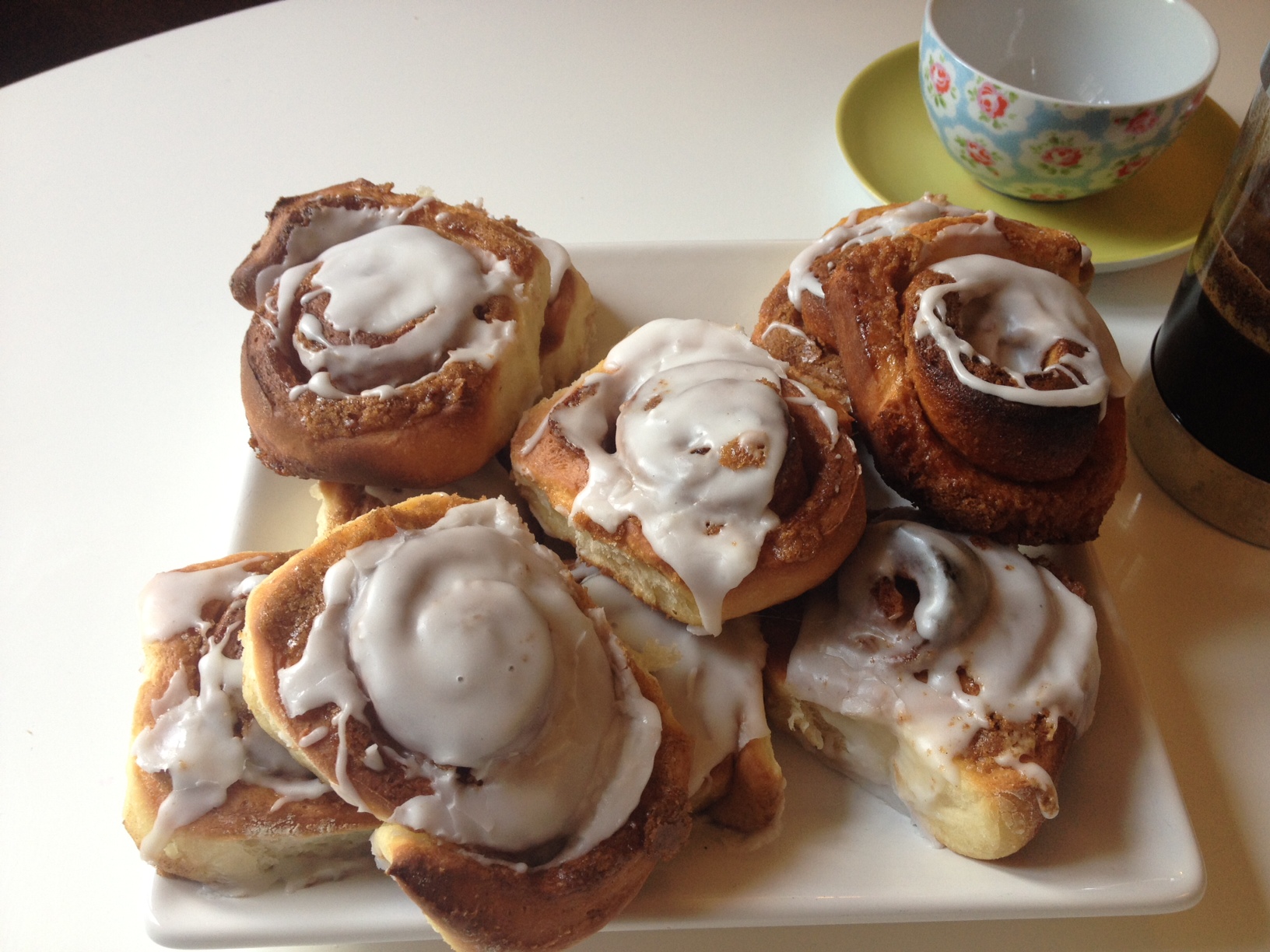 On Sunday, though, I surprised myself by trying a new and fairly complicated recipe for cinnamon swirl bins, just for the fun of it. I’d got the recipe from Jenny Colgan’s novel The Little Beach Street Bakery (if there’s one thing I love more than a good chick lit novel, it’s a chick lit novel with ace recipes in it!), and I was a little trepidatious because dedicated viewing of the Great British Bake Off has taught me that sweetened, enriched doughs can be very tricky. I could almost see the sceptical look on Paul Hollywood’s face. But, do you know what, they worked! They were absolutely delicious if I do say so myself. Their appearance could probably be tactfully described as rustic, and I may have been a bit heavy handed with the icing (although no one complained), but they tasted incredible – so much nicer than anything similar you can buy. Along with an omelette they made a fantastic lazy Sunday brunch which we all enjoyed (I stretched the no sugar rule sufficiently to give Sophia a taste), and I rediscovered my love for pottering in the kitchen. Perhaps simply because they weren’t an essential meal it made baking them all the more enjoyable. The food I make generally comes out of love for my family, but it was nice to reignite my own love of food too.