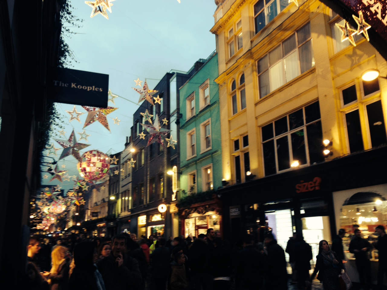 It was very strange. The office where I used to work is on the next block to the Donor Centre, and so this is very much my old stamping ground, but it has changed so much. The cafes I used to frequent have mostly changed, but I had fun doing a little window shopping and then having an indulgent Cioccolata Fiorentina in Carluccio’s whilst re-reading Katie Fforde’s feel-good novel The Rose Revived which is a pre-Christmas must for me. carnaby street