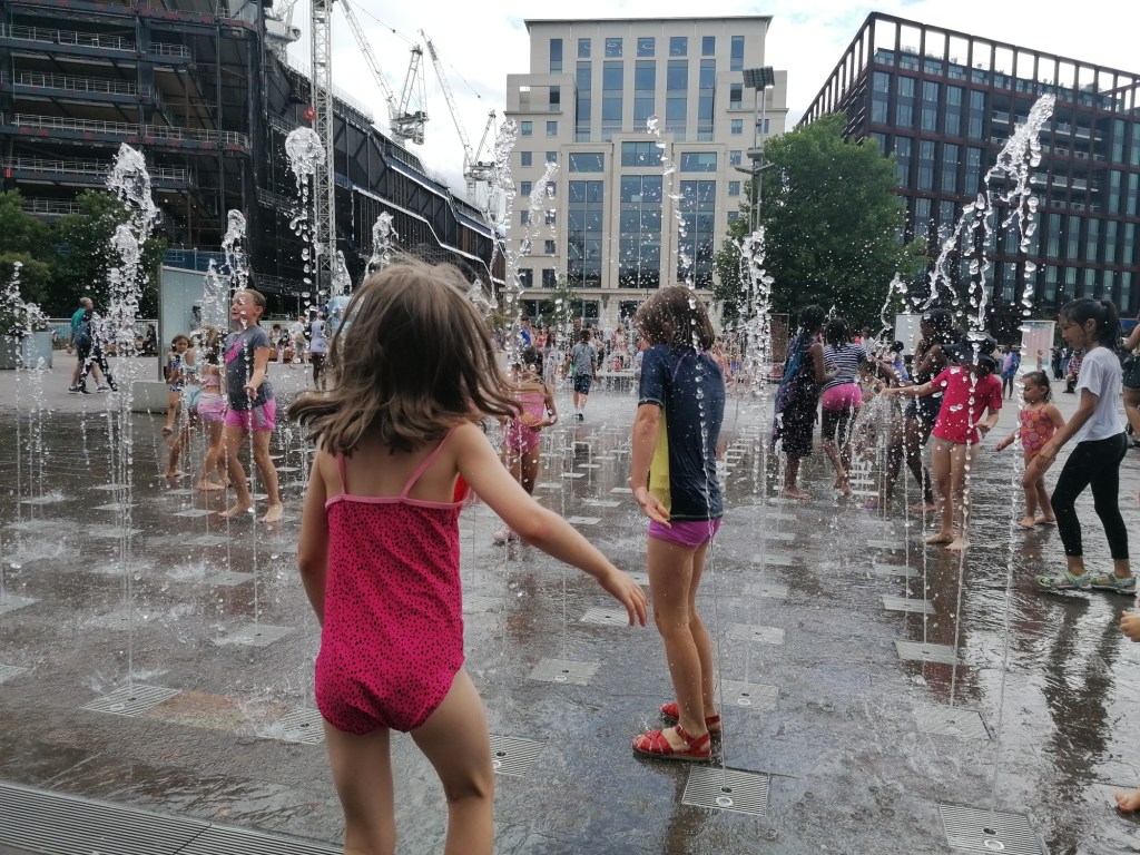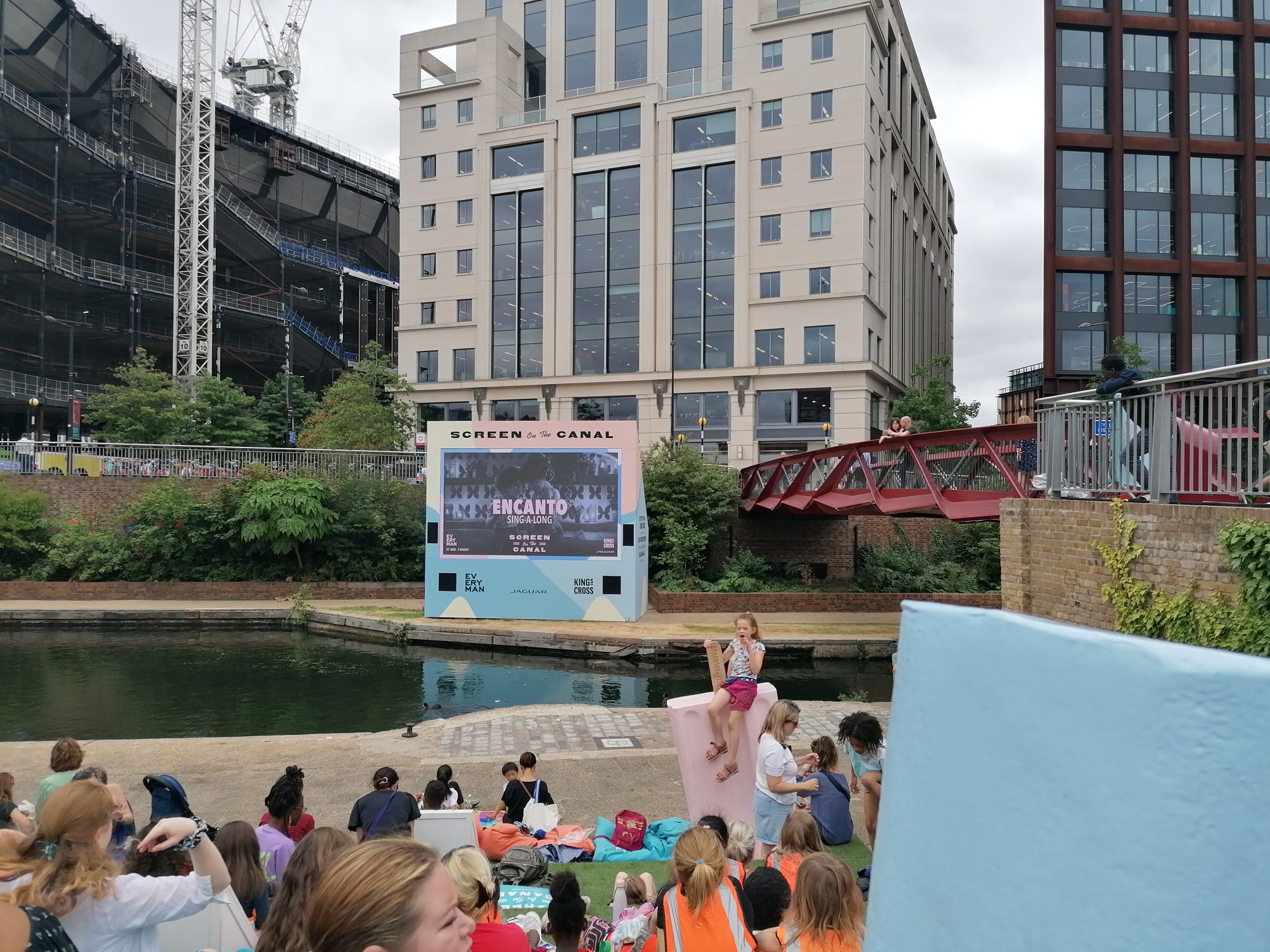Yesterday I took my daughter and her best friend to Granary Square near Kings Cross. We watched a free Sing-Along version of Encanto at a pop-up open-air cinema by the canal, and ate a picnic while we did so. The girls then played in the fountains in the square, and I resisted the temptation to join them (the downside of summer in the city is the heat – did I mention that?), and then we went to a nearby playground for a while. They had hours of fun for the cost of a box of ice lollies from the supermarket.