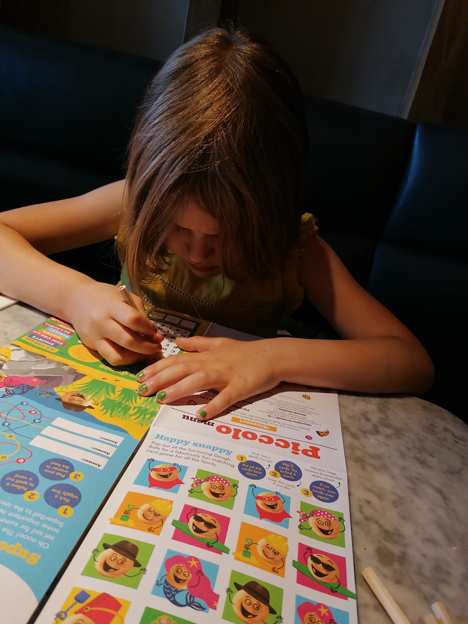 Today was a real highlight. Every summer London theatres offer free tickets to children under 17 for the whole of August. It is a bit of an online scrum when tickets go on sale, usually around mid-June, but it is well worth doing. I love taking my kids to see live theatre, it really is a unique and incredibly memorable experience, but there’s no getting away from the fact that it is also expensive, especially in the West End. Today we went to the specialist children’s theatre, the Polka Theatre in Wimbledon, to see ‘The Pirate, the Princess and the Platypus’ which was a wonderfully funny and thought-provoking play about the importance of being yourself. My daughter was utterly engaged and absorbed, and it was a delight to watch her. Then we went to Pizza Express for pizzas and ice cream for lunch, which cost the grand total of 25p because I cashed in some Tesco Clubcard vouchers. Very well worth doing. And of course Pizza Express always provide colouring pencils and an activity sheet, which makes for a relaxed dining experience with small people!